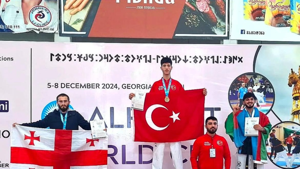 Okulumuz 12-Pazarlama ve Perakende Bölümü öğrencisi Eyüp Bayat Gürcistan'da düzenlenen Alpagur Dövüş Sporu Turnuvası'nda Dünya Şampiyonu olarak altın madalya kazanmıştır.Öğrencimizi tebrik ediyor,başarılarının devamını diliyoruz.